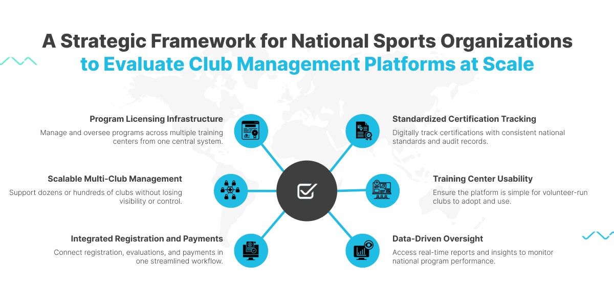 This means NSOs need to evaluate club management platforms through a different lens. The question is not simply whether a tool can process registrations. The question is whether it can standardize program delivery, track certifications at scale, manage licensing relationships, and give national leadership visibility into how programs are performing across the entire network.